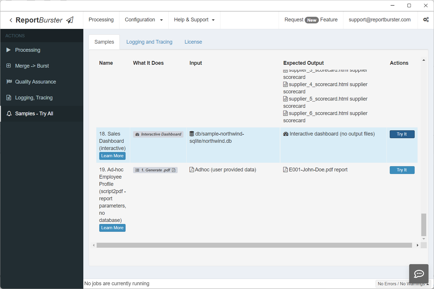 Note: The Northwind SQLite database already ships with ReportBurster and contains all the data needed for this tutorial. To get the dashboard up and running as fast as possible, simply copy each code snippet below into the corresponding tab — get your dashboard ready in 5 minutes (and, along the way, learn how to do it for yourself).
